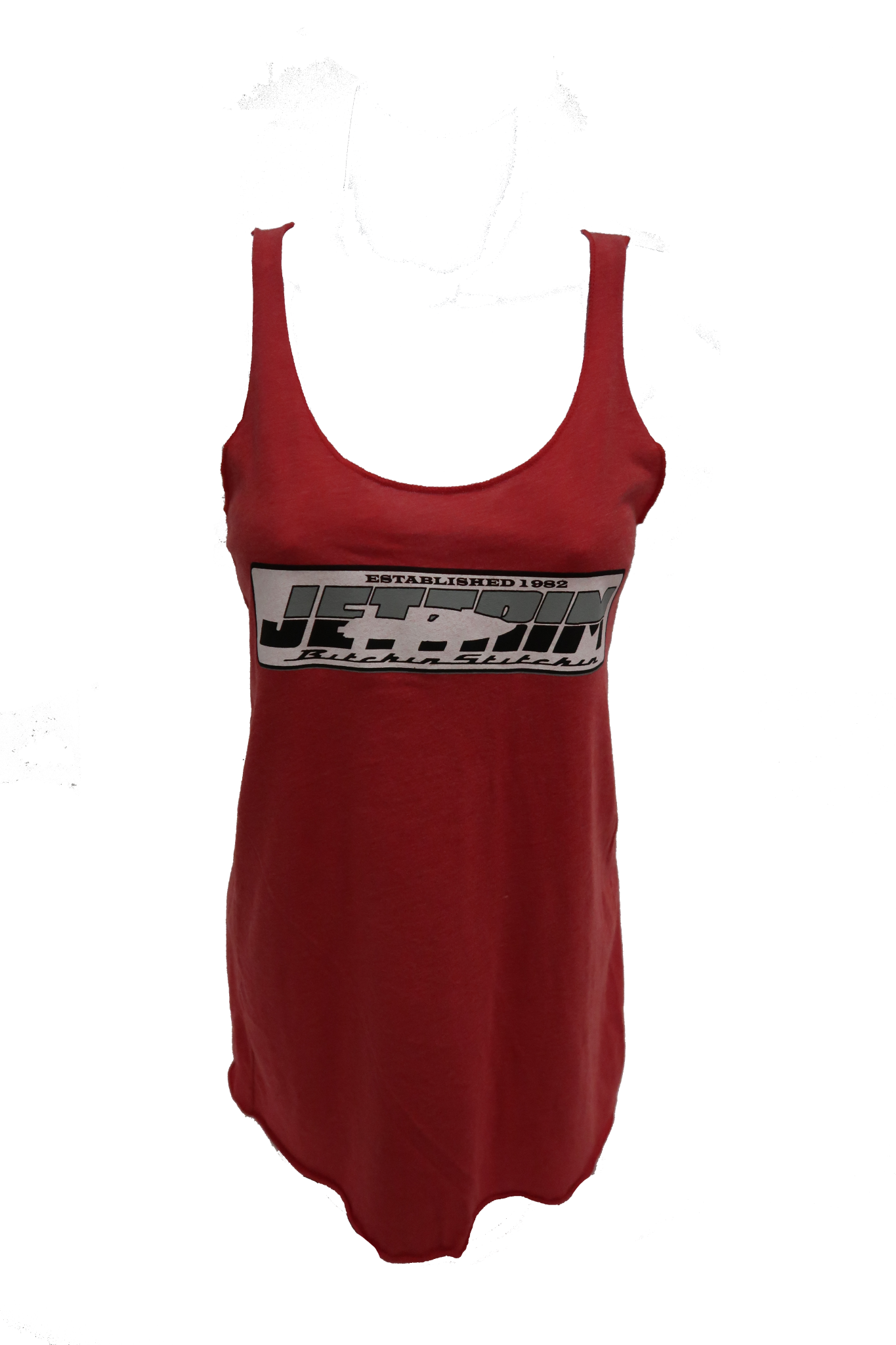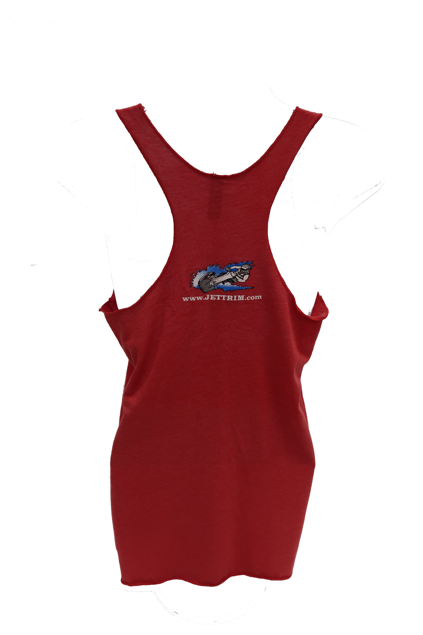 Jettrim Racerback Tank. Color: Red with white and grey logo