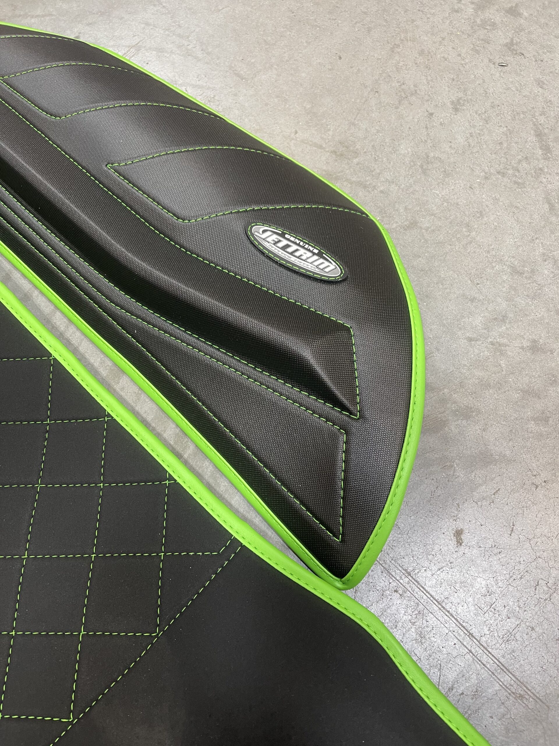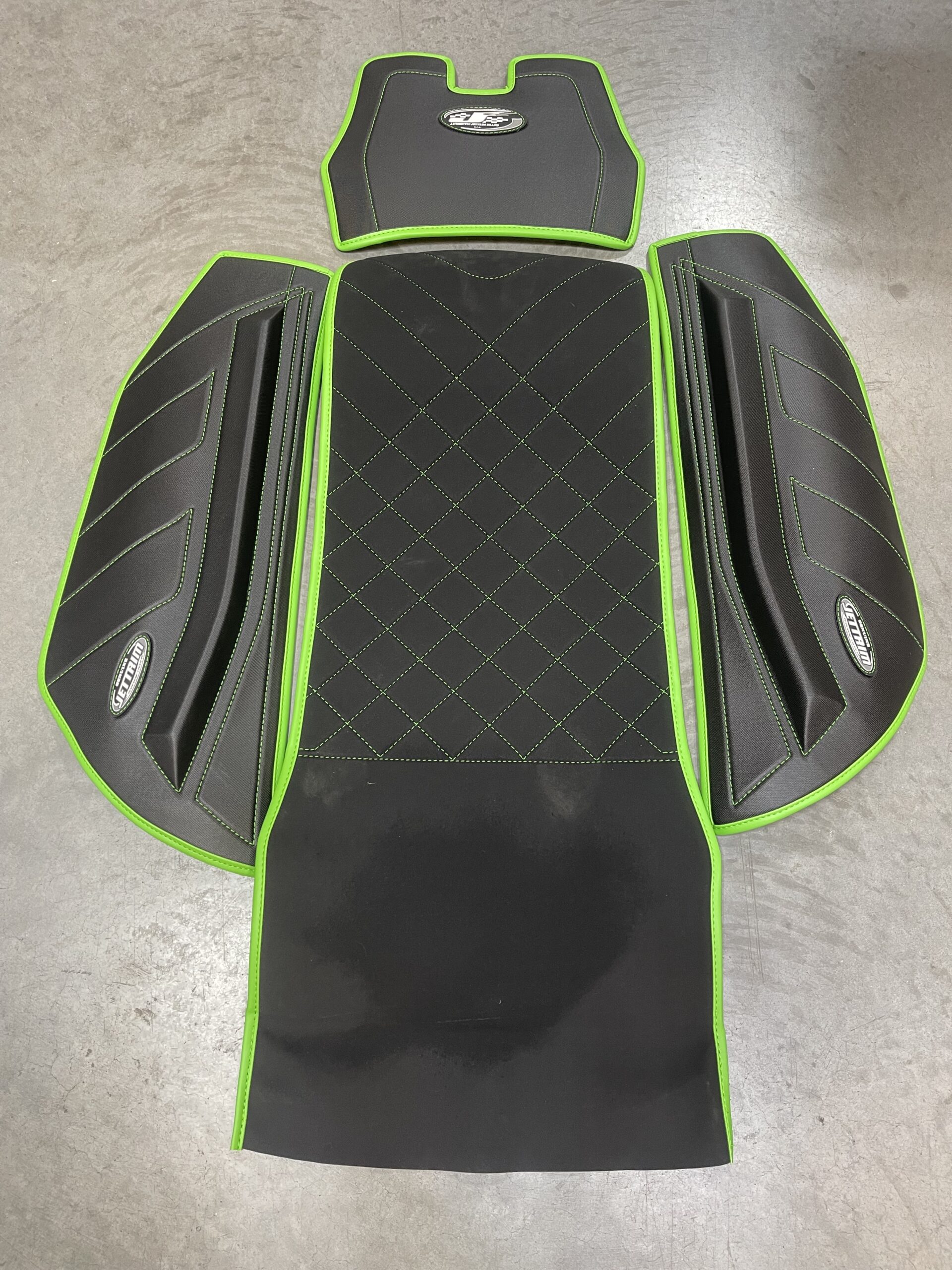 BLACK GEAR SIDES AND DASH WITH WORX GREEN SMOOTH TRIM AND WORX GREEN STITCHING